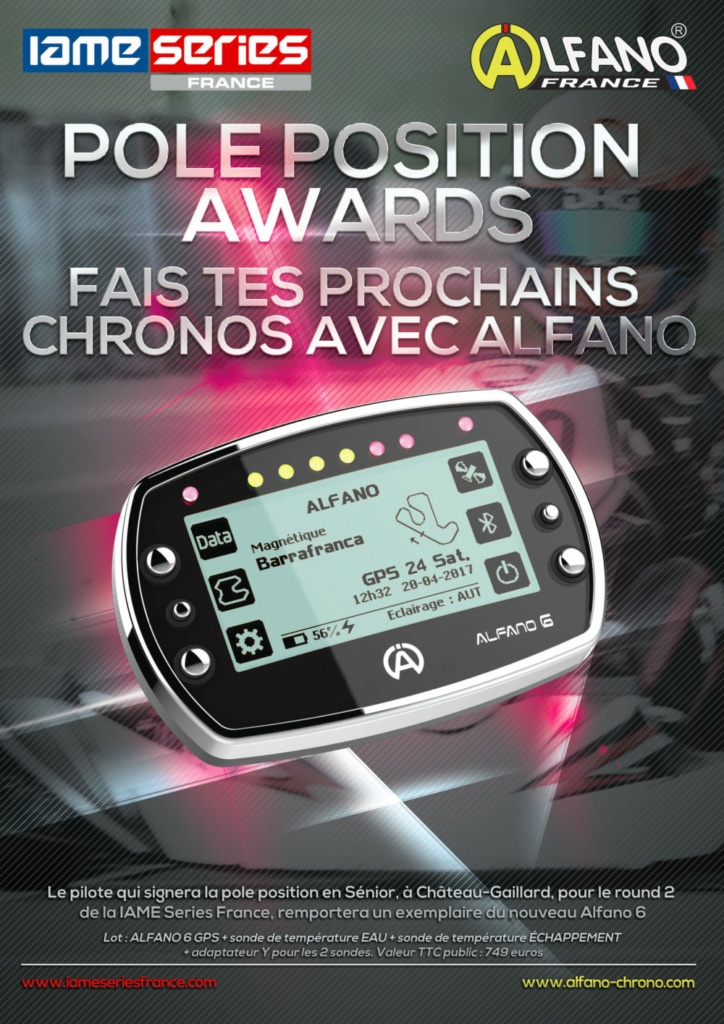 Le pilote qui signera la pole position en Sénior, à Château-Gaillard, pour le round 2 de la IAME Series France, remportera un exemplaire du nouveau Alfano 6.