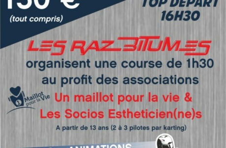 Les associations Les Razbitumes, Un maillot pour la Vie et Les Socios Esthéticien(ne)s s’associent et vous proposent de participer à une Endurance Loisir de 1h30...