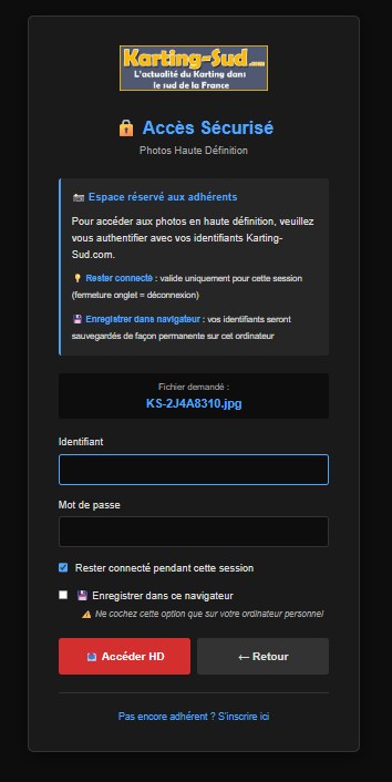 Pour pouvoir télécharger en Haute Résolution les photos de Karting-Sud.com et de ses photographes, vous devez être membre du “Club Karting-Sud.com”.